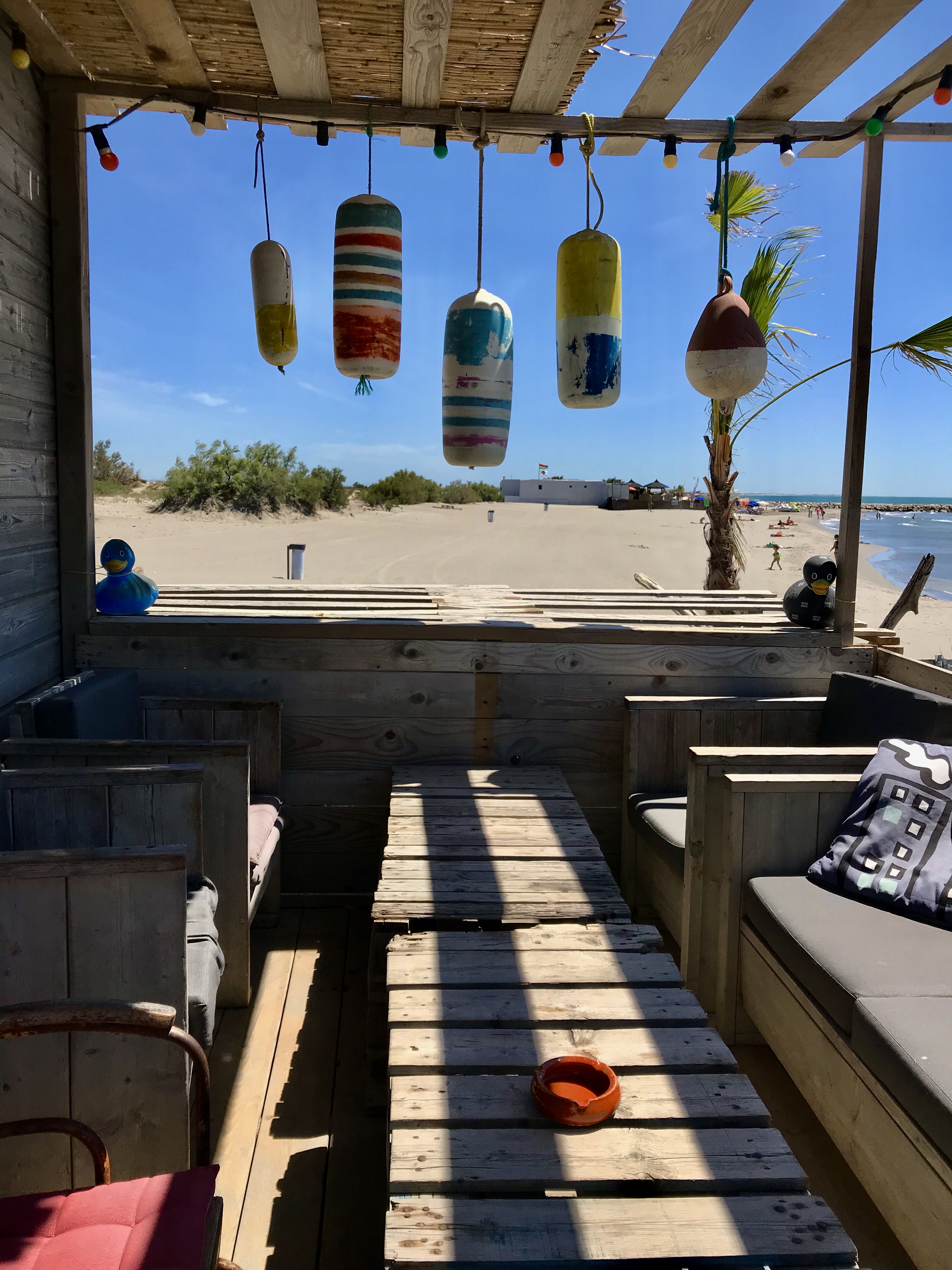 La paillote de la Playa quant à elle, a été conçue en toute simplicité, en bois déteint naturellement par le soleil et le sable. La déco est en outre à la fois déjantée et très mode récupération: Ici, on redonne vie à des anciens jouets pour enfant (barbies, legos,..), ou encore un mannequin en plastique. Une déco qui nous fait penser au style berlinois; concevoir une atmosphère agréable en toute simplicité avec quelques objets qui retrouvent une nouvelle fonctionnalité. Des bouées suspendues, des tables donnant sur la mer et là , la magie opère; nous avons l’impression d’être en vacances au bout du monde.